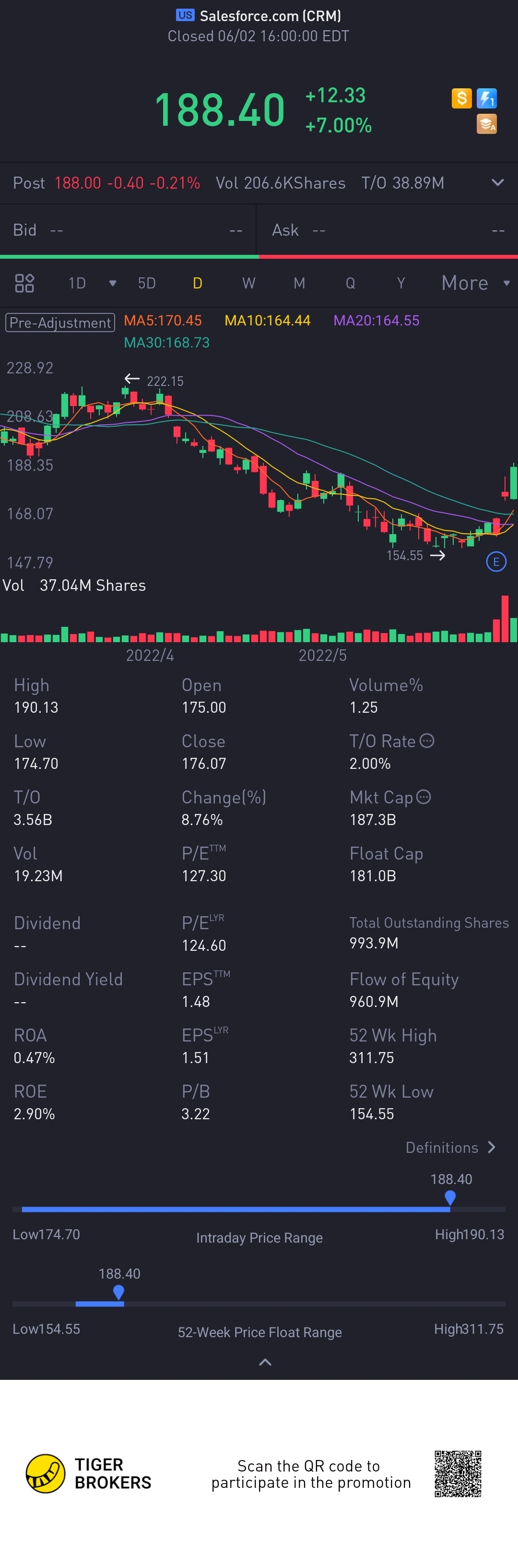 $Salesforce.com(CRM)$Good stock to watch but don't buy at high price now. But when it dips while market is still up.