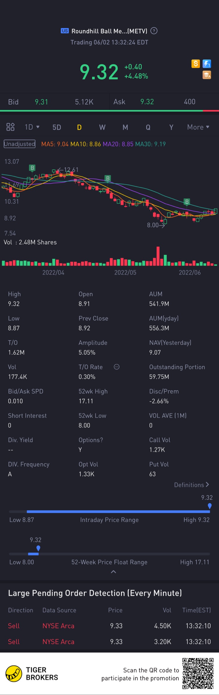 $Roundhill Ball Metaverse ETF(METV)$Going great today