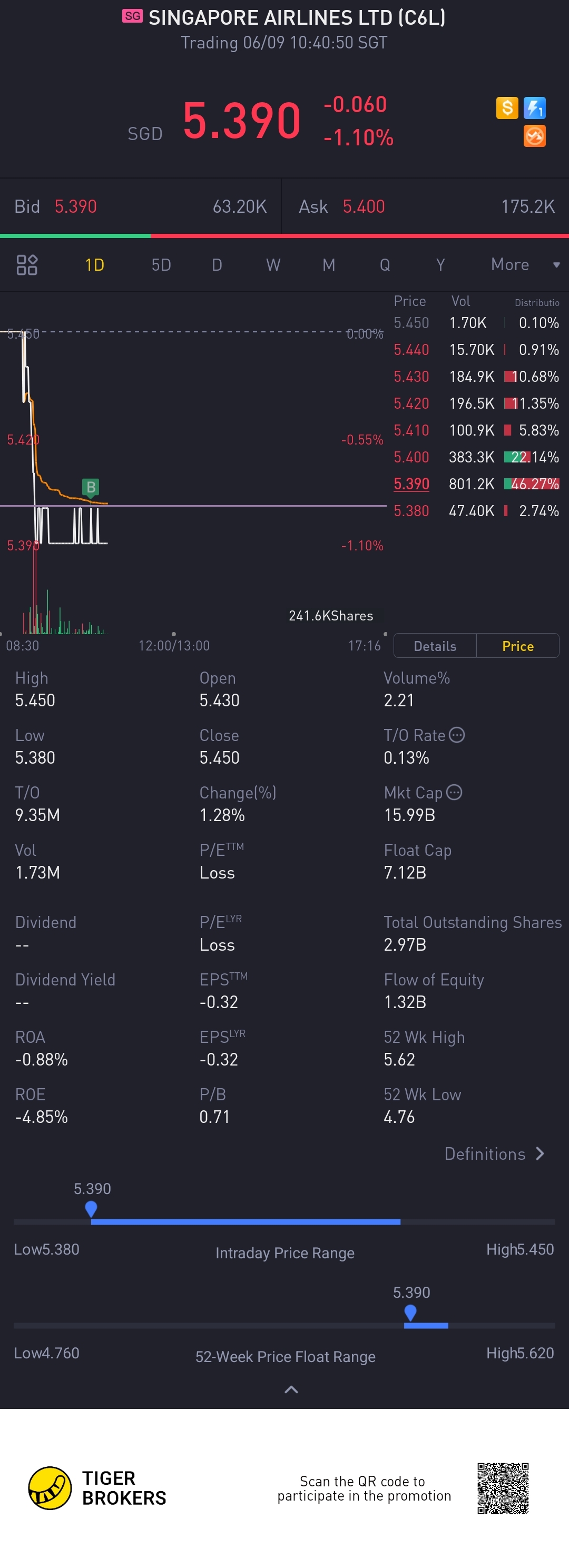 $SINGAPORE AIRLINES LTD(C6L.SI)$ A minor setback, but not to worry, be patient. This stock is currently to hold for mid to long term, possibly 6 months to 2 years.