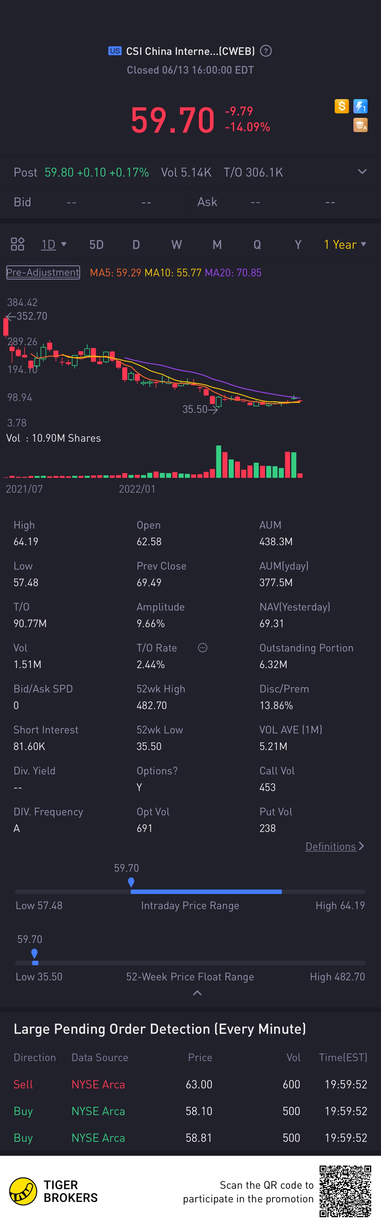 $CSI China Internet Index Bull 2X Shares(CWEB)$B