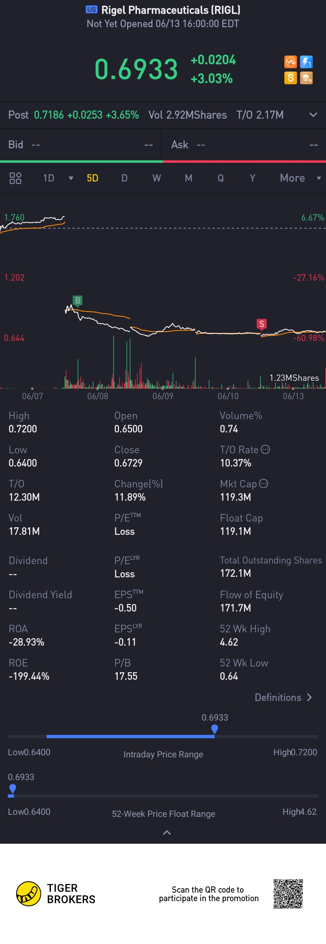 $Rigel Pharmaceuticals(RIGL)$will it go up gurther today since market is bad?