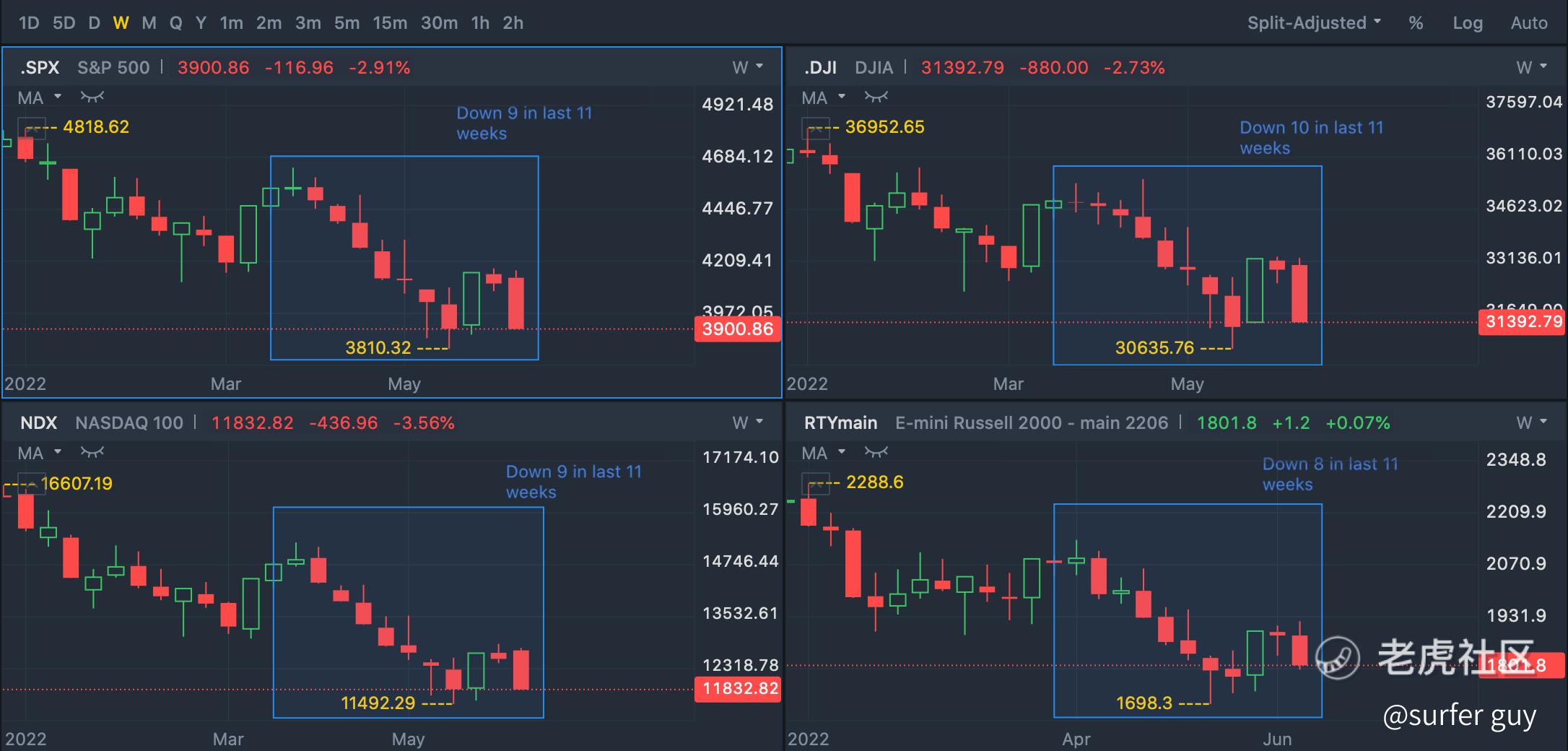 - Bellwether $S&P 500(.SPX)$ and tech-heavy $NASDAQ 100(NDX)$ clocked 9 losing weeks in the last 11 weeks