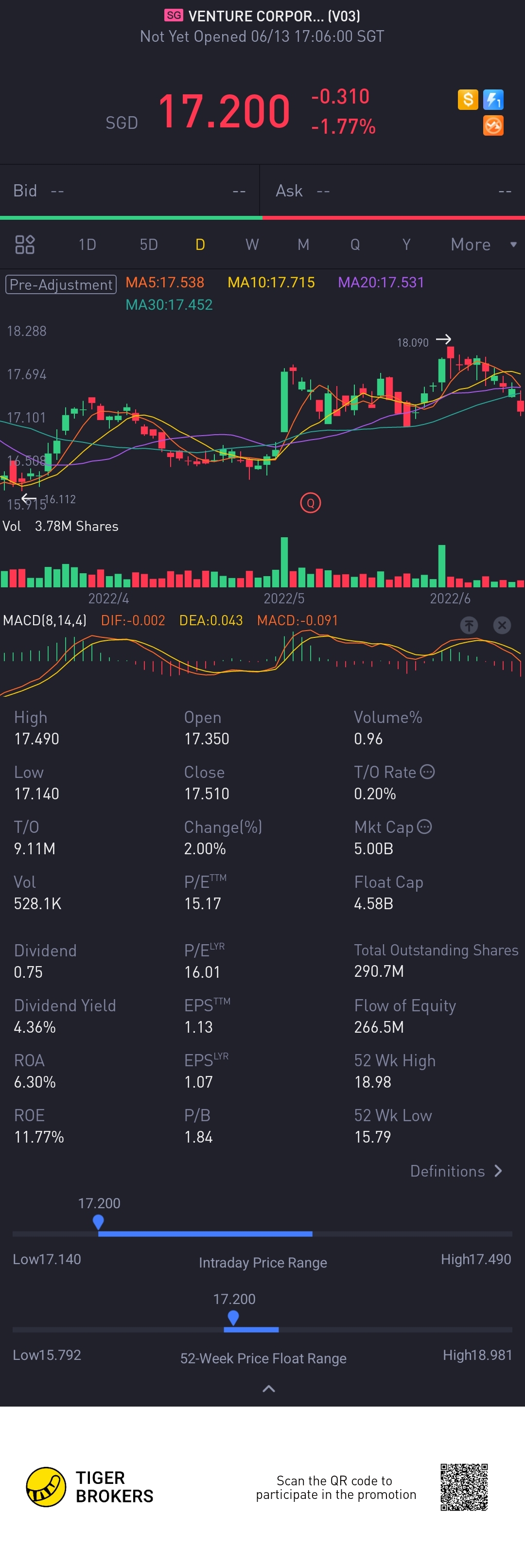 $VENTURE CORPORATION LIMITED(V03.SI)$One of my favorite stock waiting to buy back. TA looks bad .. plus the current market condiion, better wait and see first.... Please DYODD.