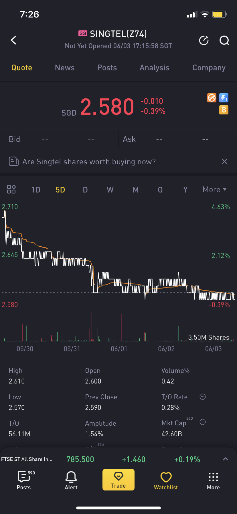 $SINGTEL(Z74.SI)$not sure whether the current share price at S$2.58 is a good buy or not.