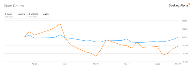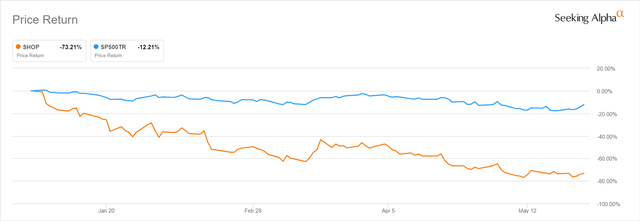 SHOP's shares have done poorly, declining by -11% and -73% in the past month and the year-to-date period, respectively as per the charts below.