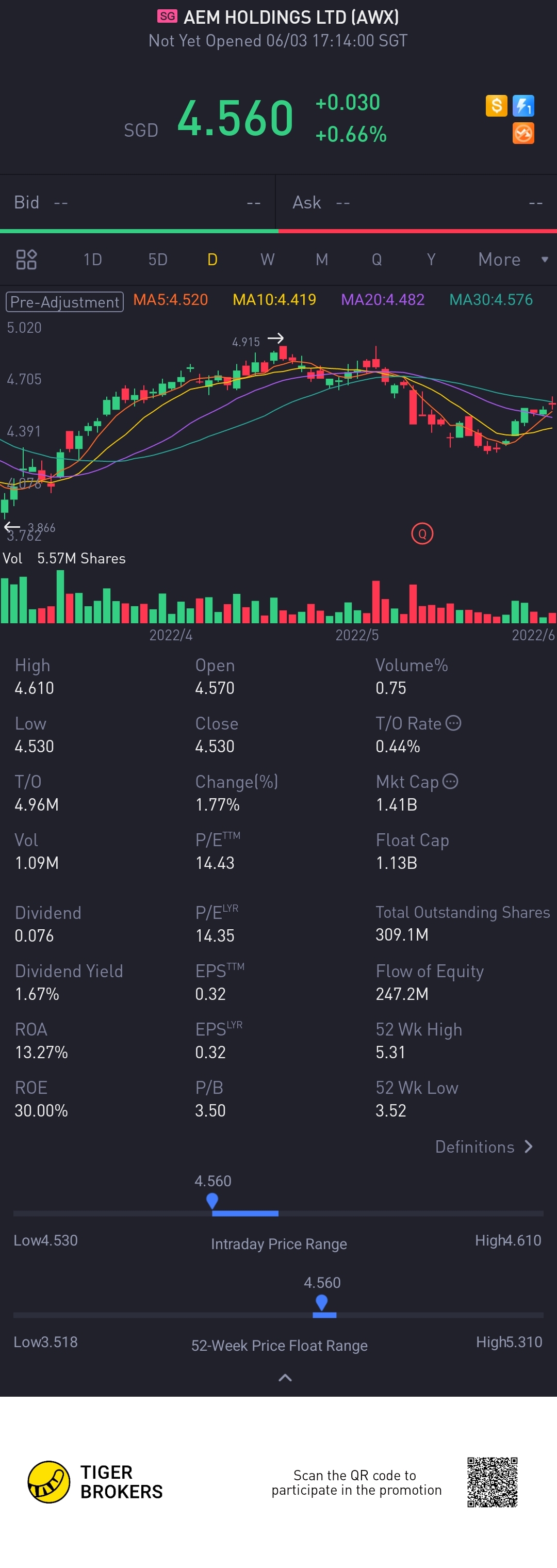 $AEM HOLDINGS LTD(AWX.SI)$Russia limits exports of noble gases, a key ingredient for making chips. What is the impact to AEM? Decision to be made... take small profit first or hold?