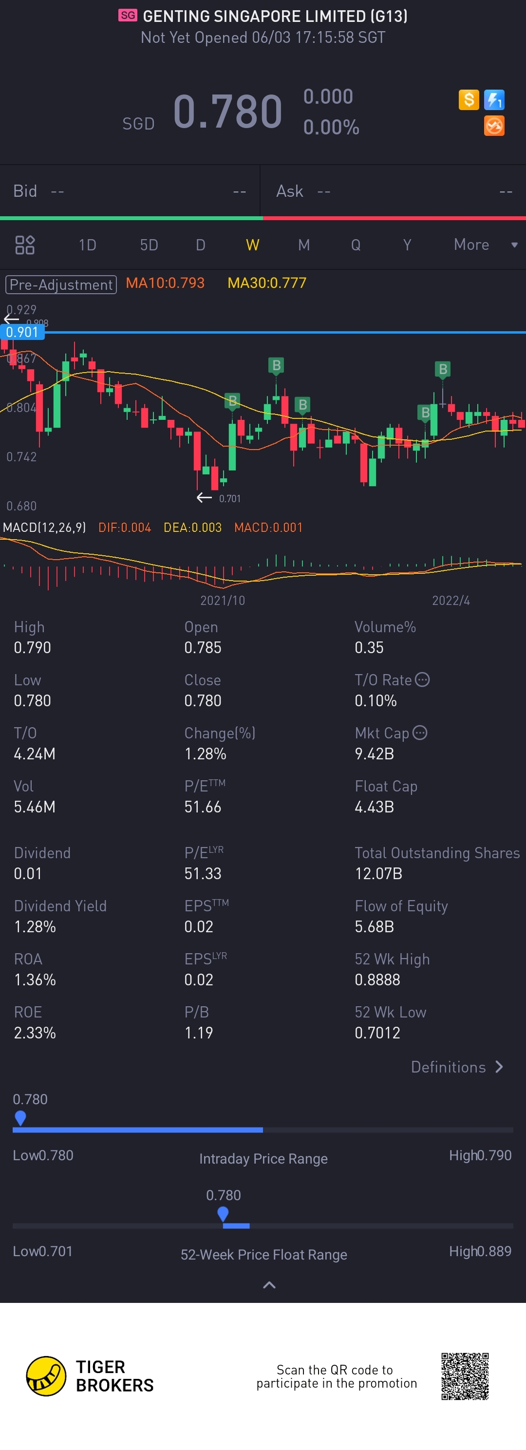 $GENTING SINGAPORE LIMITED(G13.SI)$Tourist coming....