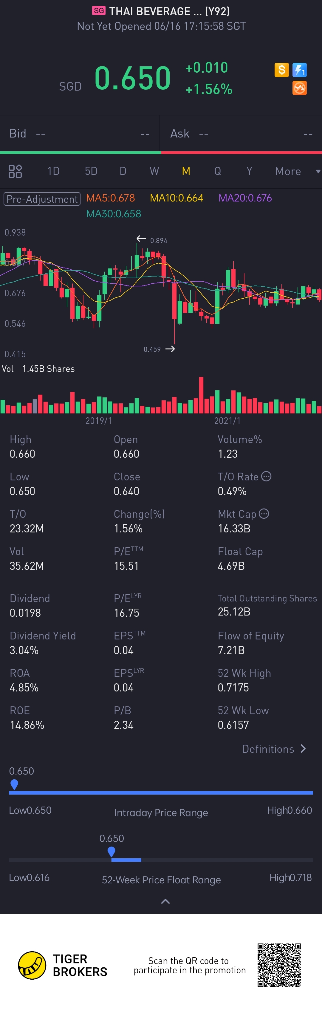 $THAI BEVERAGE PUBLIC CO LTD(Y92.SI)$thai beverage