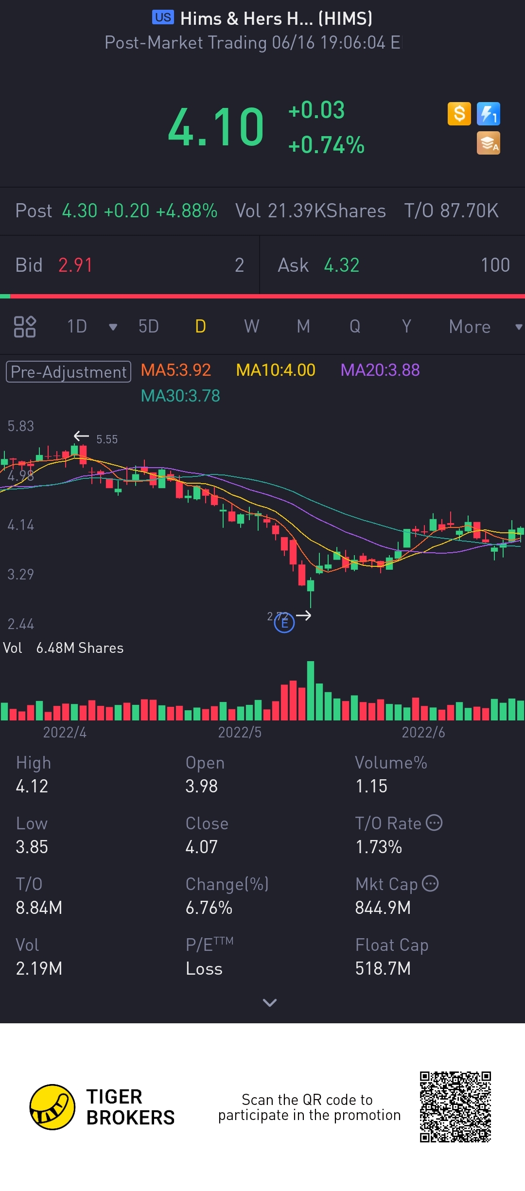 $Hims & Hers Health Inc.(HIMS)$Continuosly up! Maybe it has the relevant products most people use during this blood bath.