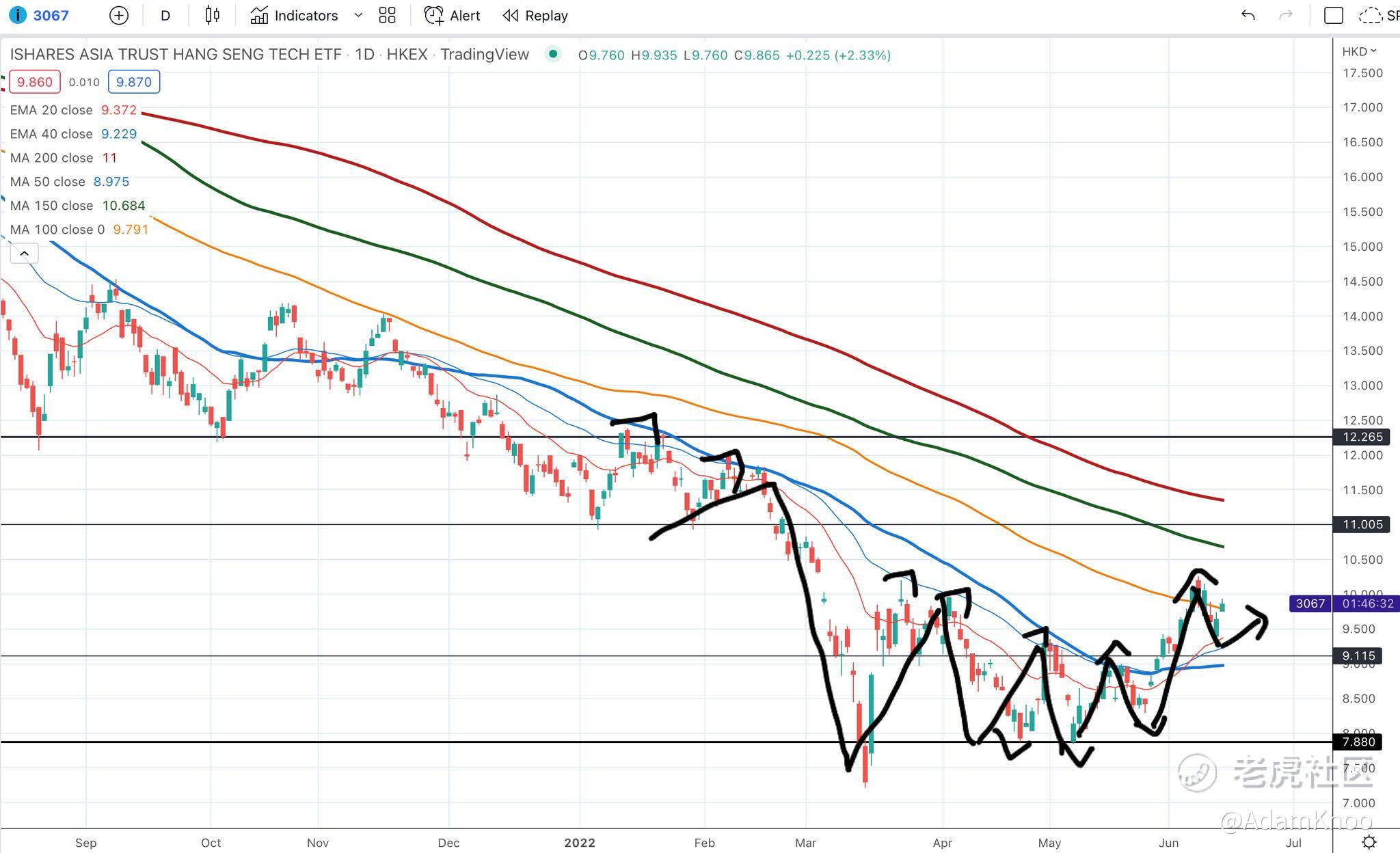 China tech stocks have reversed into a short-term uptrend... higher highs and higher lows in price action...20EMA crossed above the 40EMA.