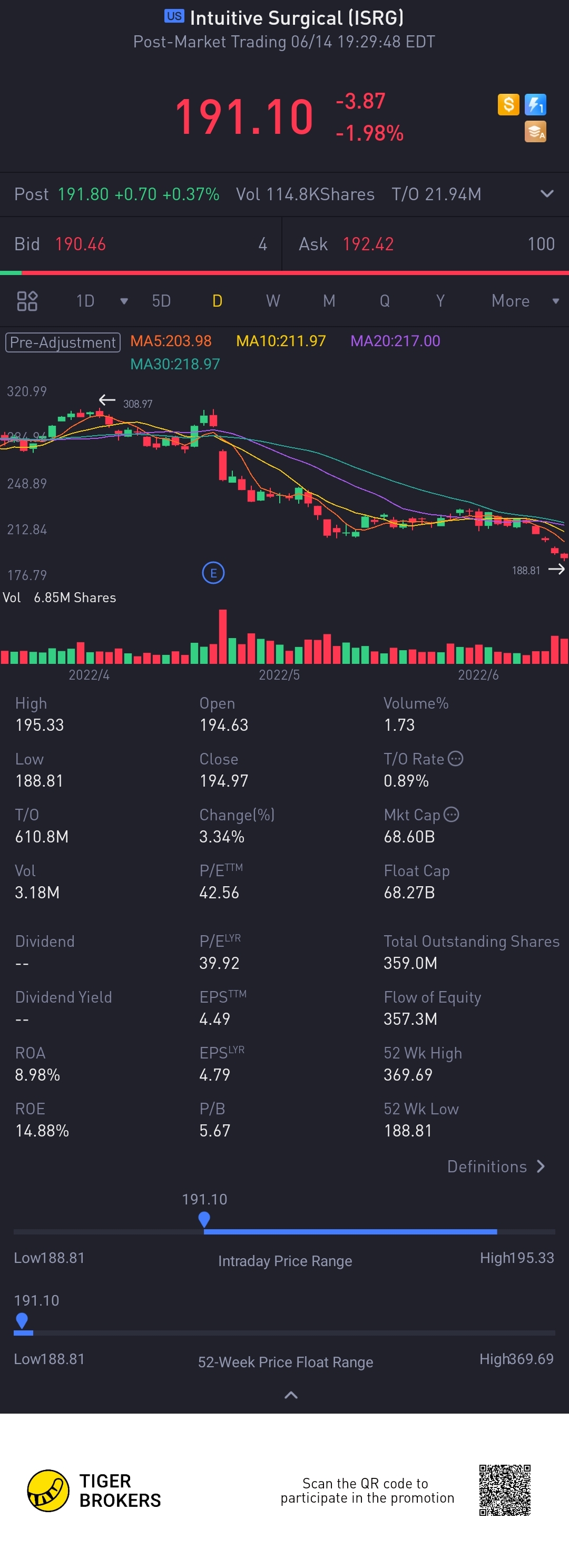 $Intuitive Surgical(ISRG)$ i thinl it is good chance to buy this company.. High tech for future.. Now at discounted price.