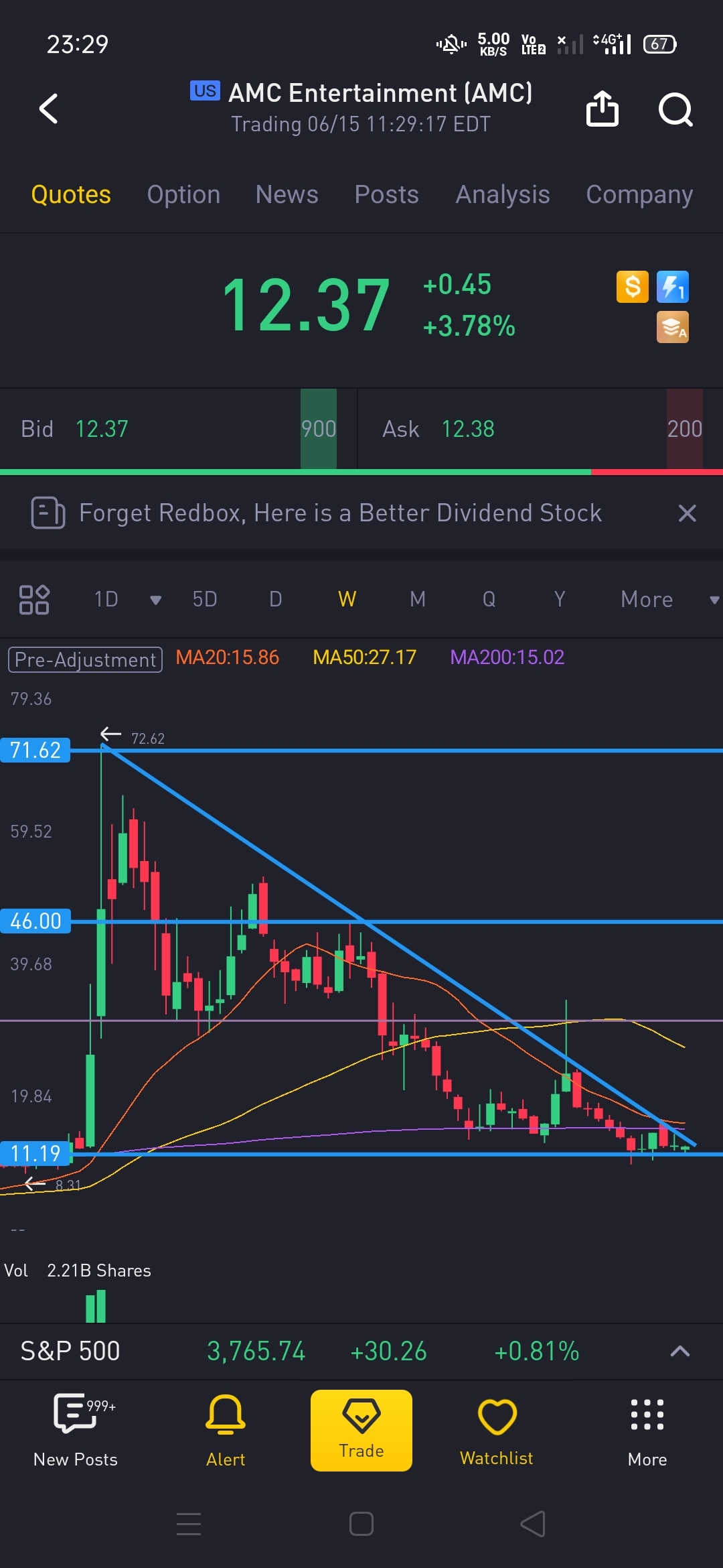 $AMC Entertainment(AMC)$Look at this trendline. Just stare at it and tell me it isn't primed to go based on technicals and when fear of recession is high