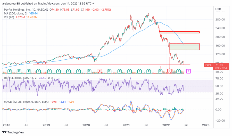 The price of PayPal stock has collapsed to its lowest levels since May 2018 amid the confluence of various negative catalysts including a shift in macroeconomic conditions and a fading pandemic tailwind.
