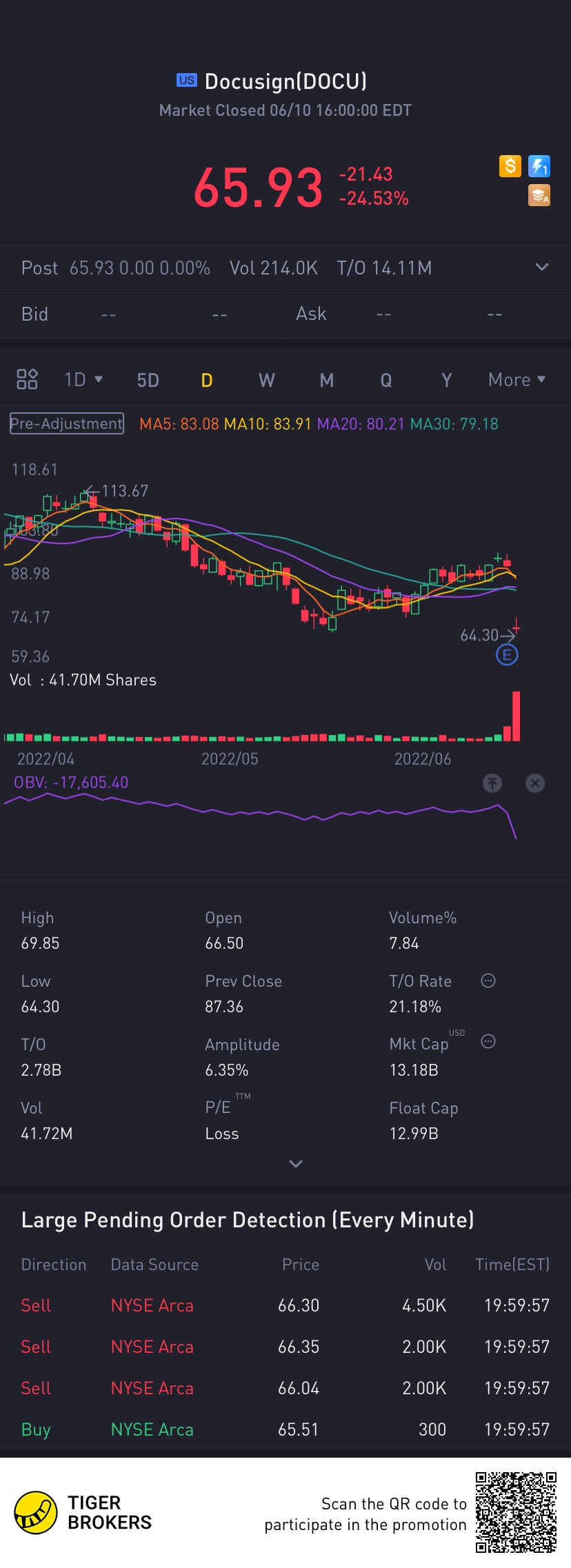 $Docusign(DOCU)$nowsady growth ER poor easily drop more than 10% in bear environment. Maybe opportunities to buy at good price.