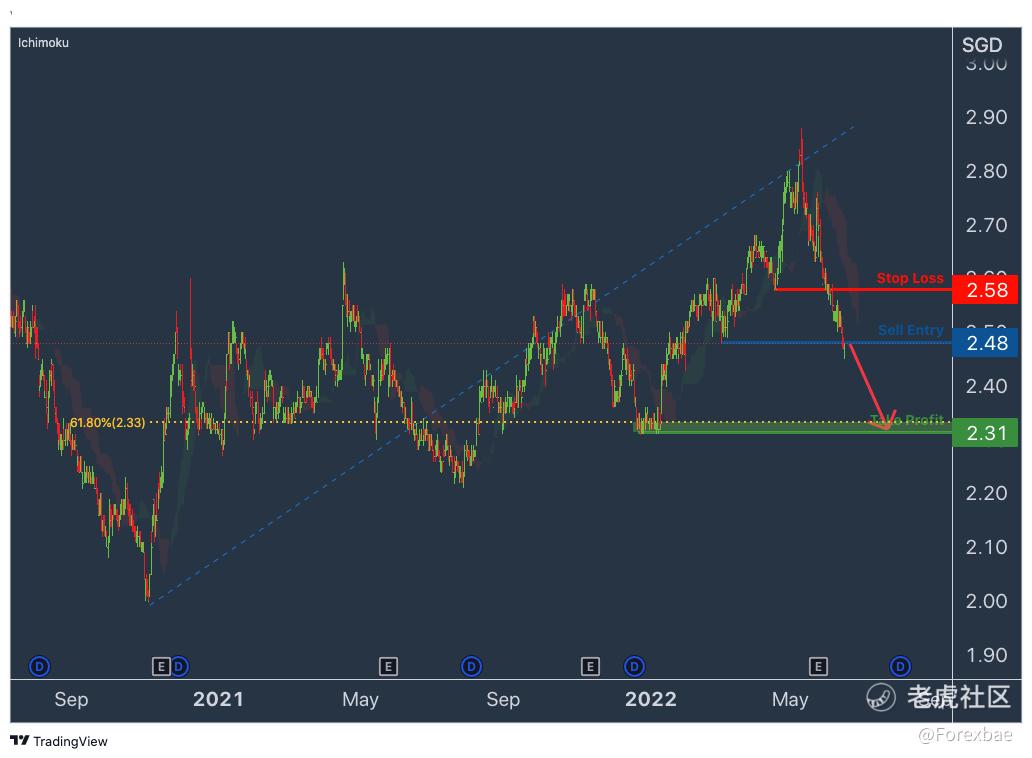 with price moving below the ichimoku cloud and the current bearish pressure, Im looking to get in on a sell position at the horizontal pullback support to my take profit at the horizontal swing low support and 61.8% Fibonacci retracement. Altertively, price may break structure and head for my stop loss where the next horizontal pullback resistance is.