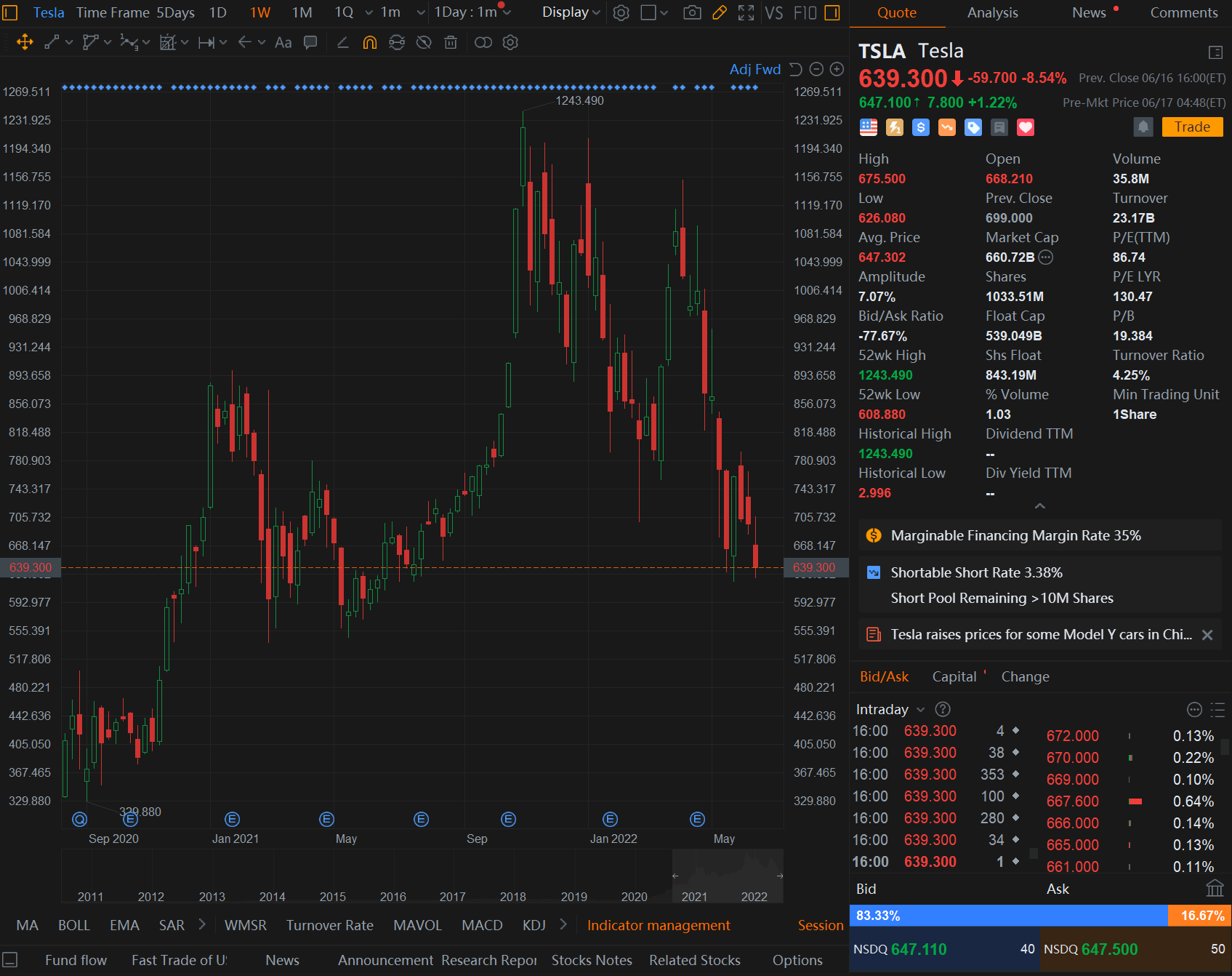 Tesla is currently trading at $640 as of writing and I am using the Dec 2022 expiry, which gives us around 180+ days to expiration.