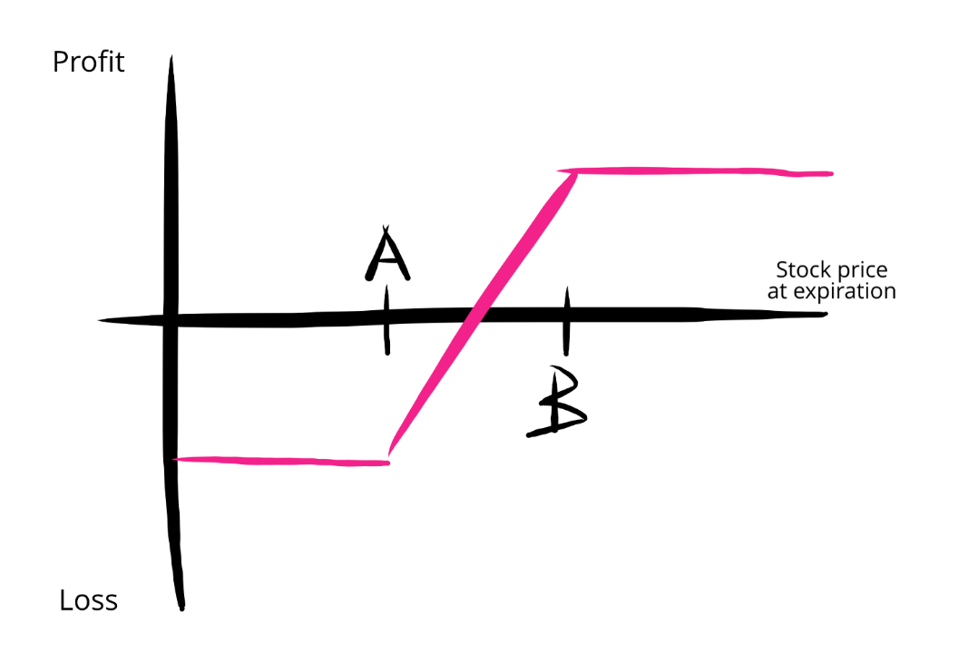 The sweet spot: You would ideally want the stock to be at or above strike price B at expiration