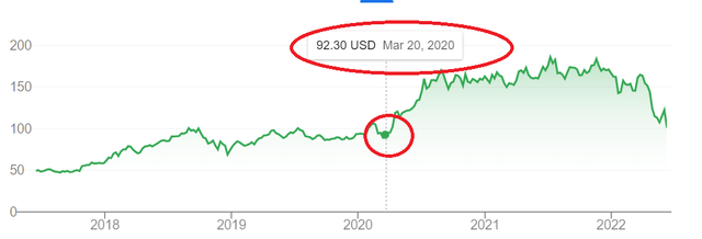 - At $95, Amazon will be trading at its pre-pandemic level as shown in the chart above. Sure, some companies did go overboard with hiring during the pandemic boom but in Amazon's case, that is more pronounced at its retail side. Sure, some of the excesses are gone forever but it is ridiculous to assume the gains and progress made on AWS is worth nothing after 2+ years.