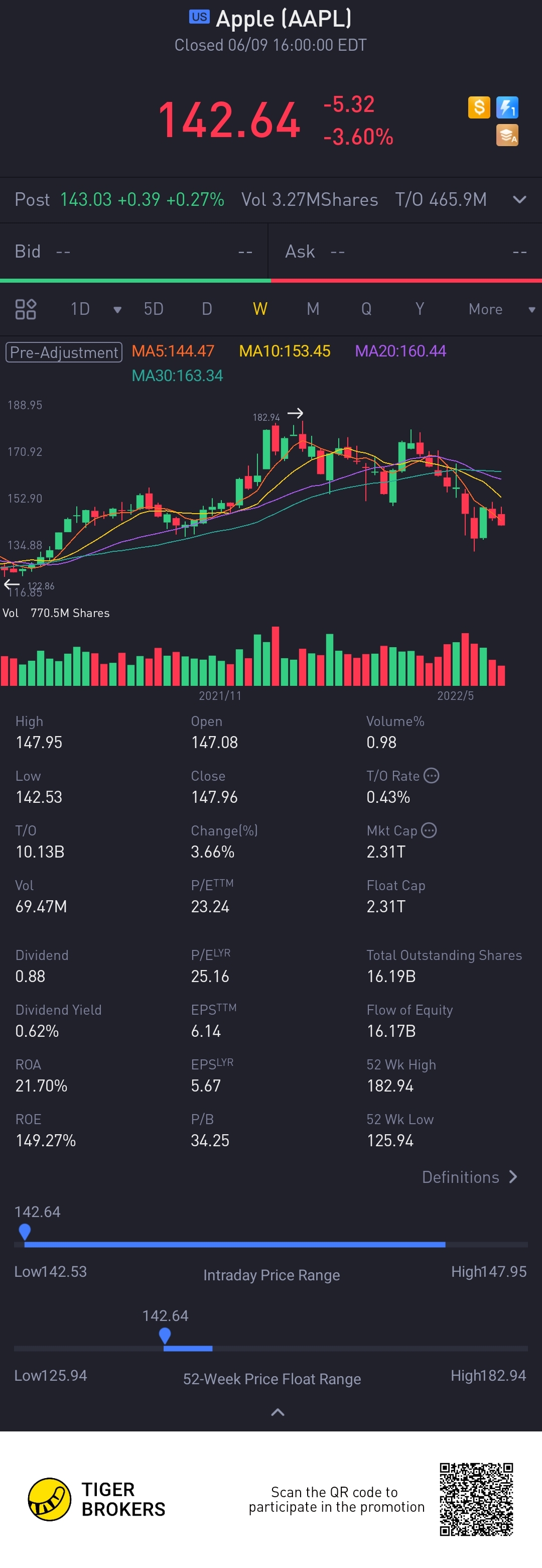 $Apple(AAPL)$Apple's share price dropped sharply on Thursday following anticipation that consumer price index (CPI) report that is to be released on Friday will report higher CPI, which will general result in bearish price movements. Hence, the price drop has not much to do with Apple's business and presents a good chance to buy the dip.