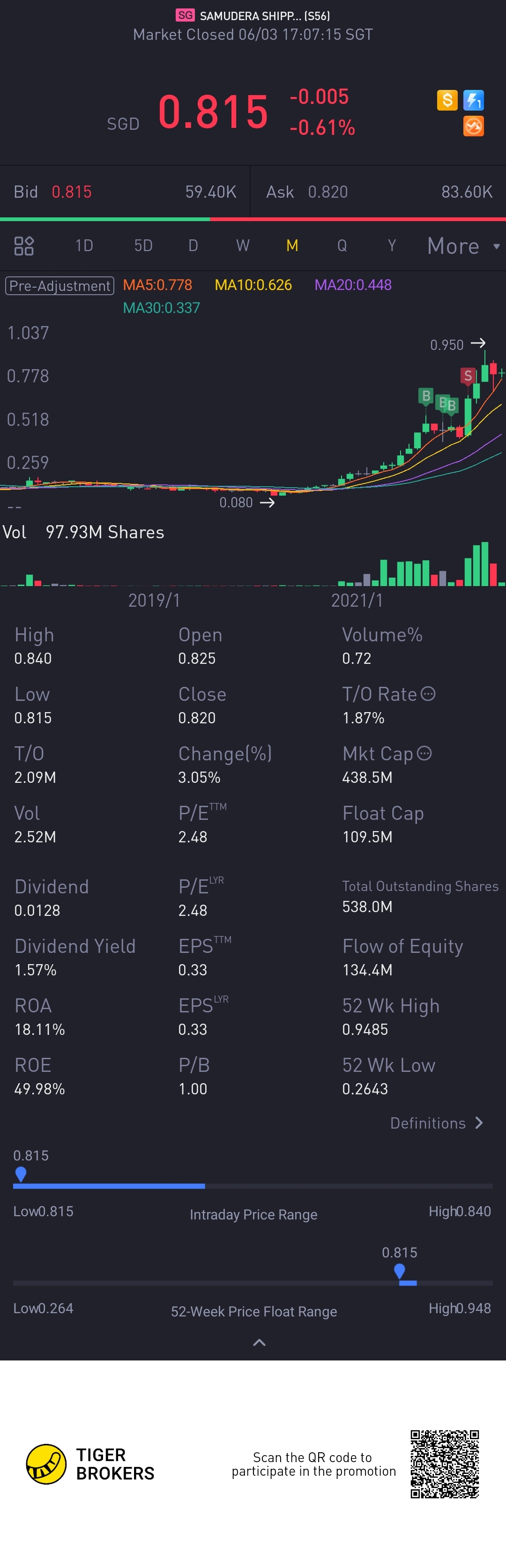 $SAMUDERA SHIPPING LINE LTD(S56.SI)$still hold.