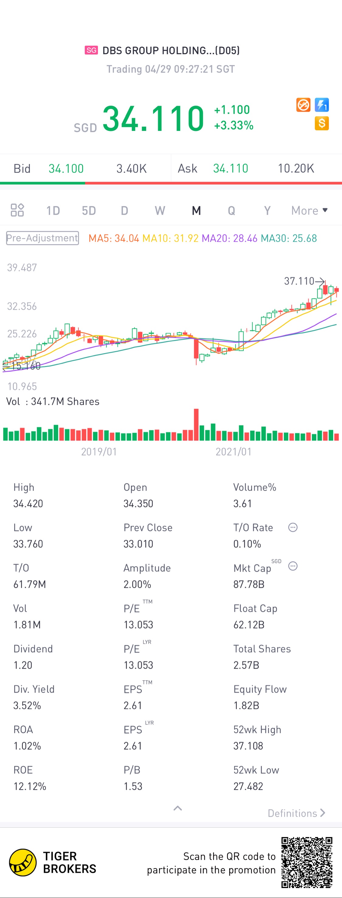 $DBS GROUP HOLDINGS LTD(D05.SI)$Profit drop didn't affect their share price