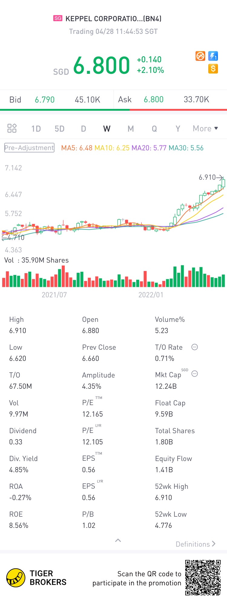 $KEPPEL CORPORATION LIMITED(BN4.SI)$Hold