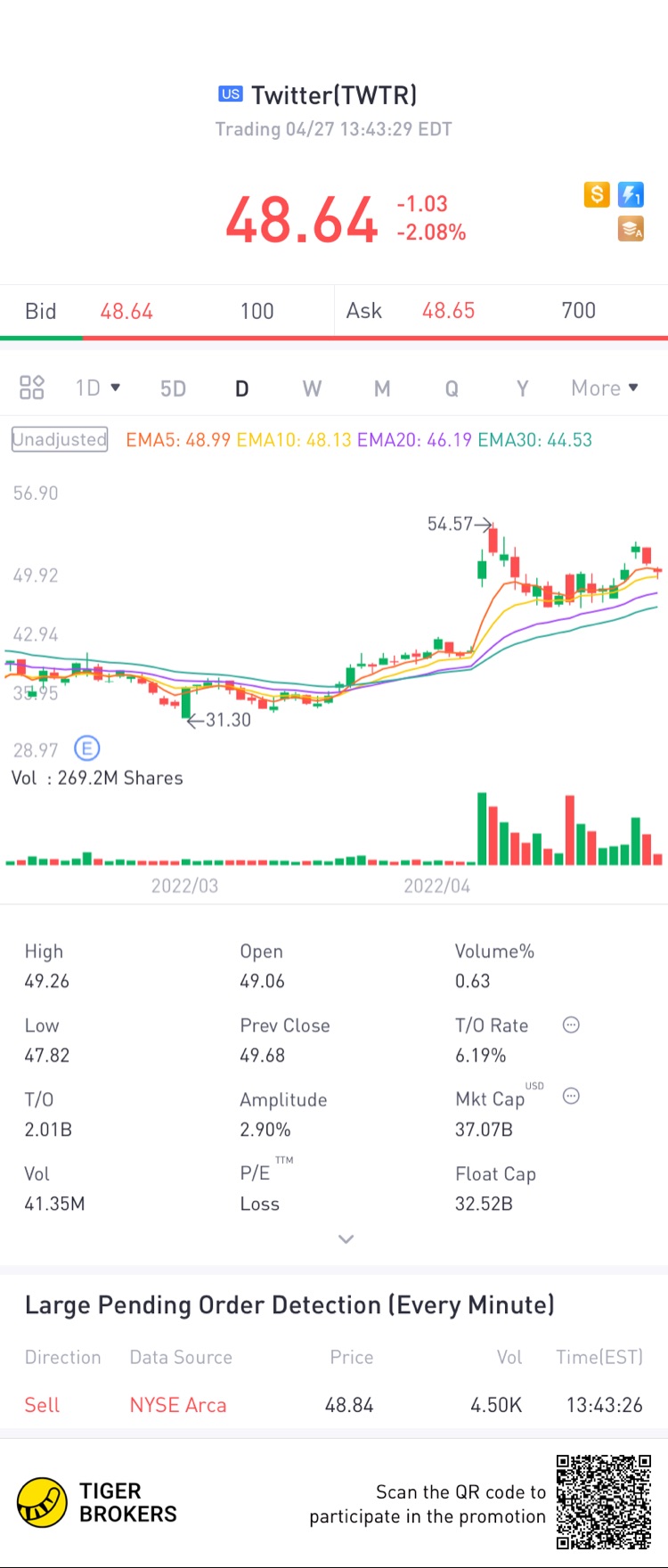 $Twitter(TWTR)$Elon Musk has taken over the Twitter with $44 billion, hoping and waiting for it gain.