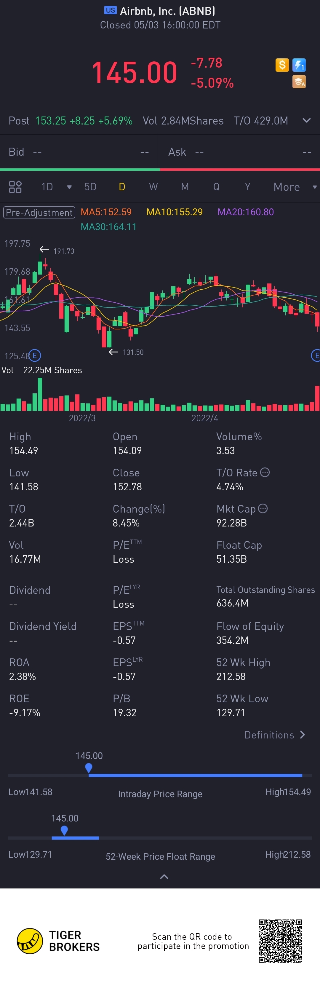 $Airbnb, Inc.(ABNB)$Very positive recovery from 1Q result. If no new serious covid variants, stock price is going up again.