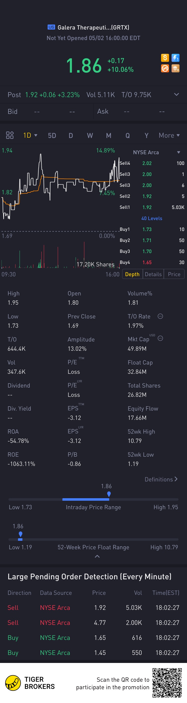 $Galera Therapeutics, Inc.(GRTX)$announced topline results from Phase 2a AESOP trial of avasopasem for severe acute radiation-induced esophagitis in lung cancer patients receiving concurrent chemoradiotherapy.