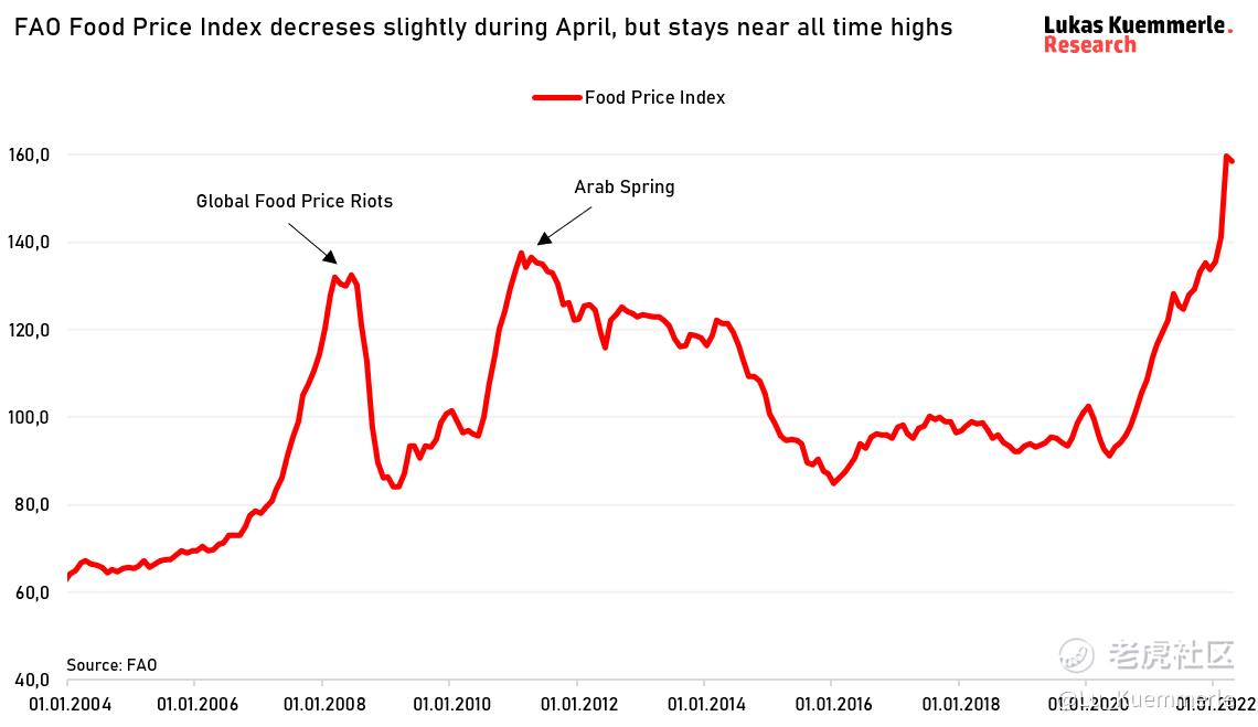 The FAO Food Price Index showed a deceleration in food price inflation during April. But this was kind of the expectation because many key commodities went into a consolidation phase. While the index declined 0,75% on a month-to-month basis, it’s still up 30% YTD.