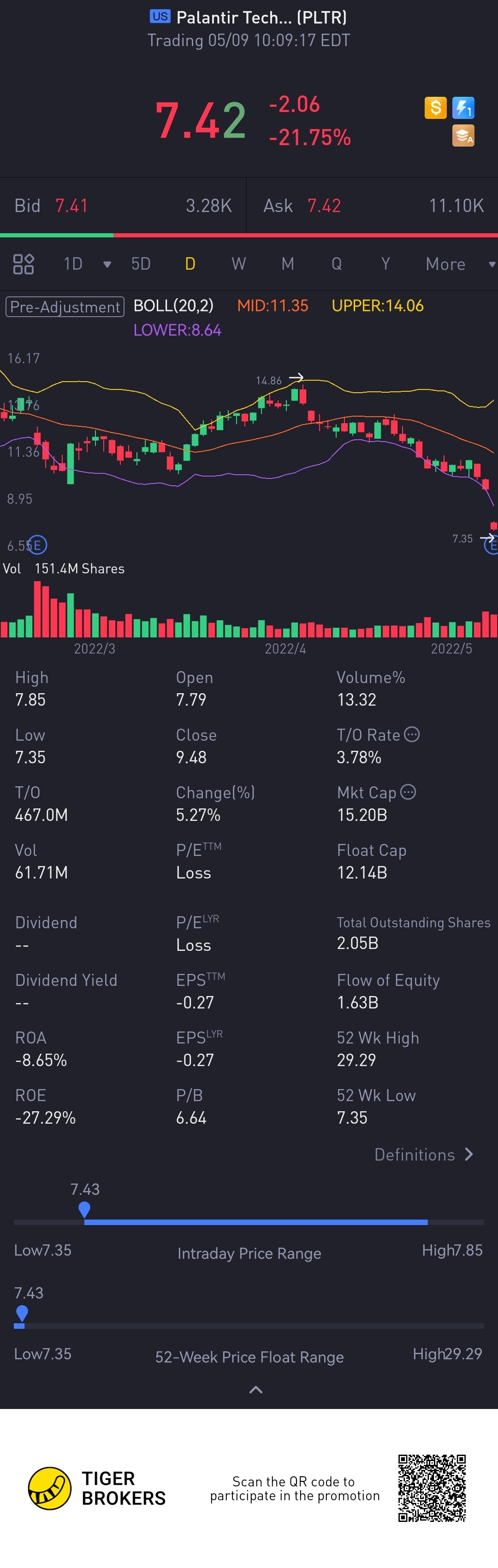 $Palantir Technologies Inc.(PLTR)$leas than IPO price now ? and i lost 60% already. I think i burnt all for this counter