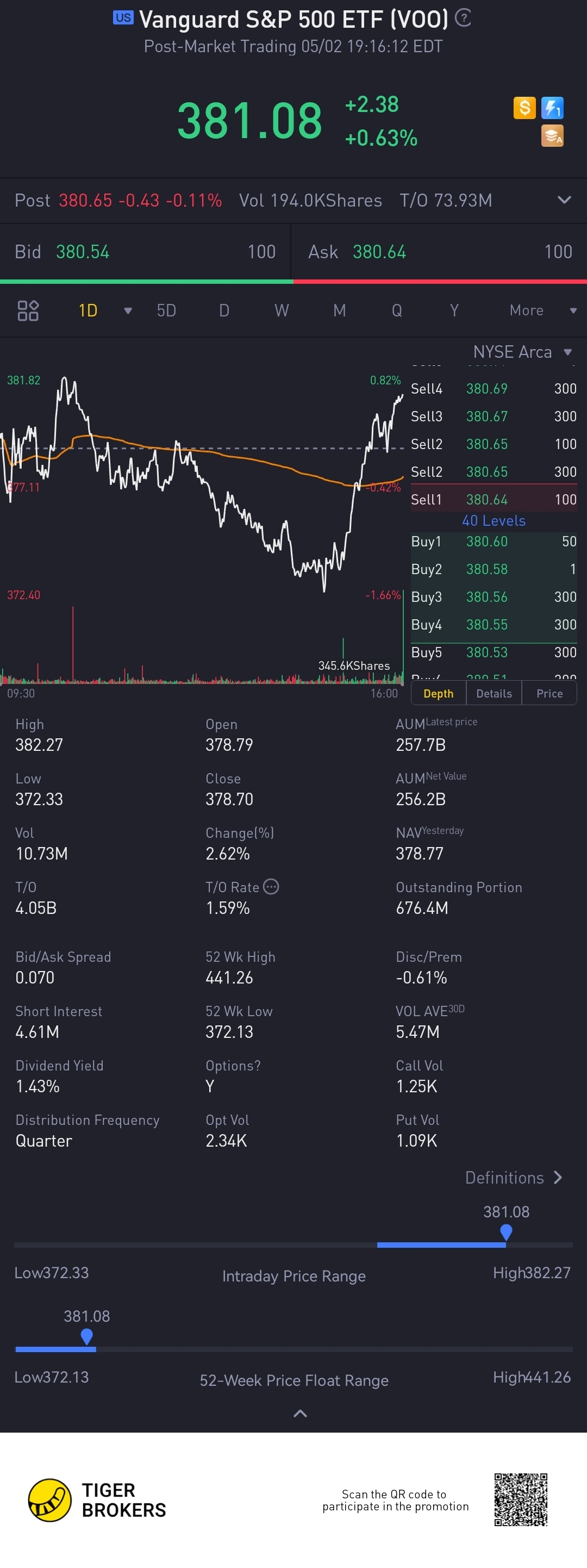 $Vanguard S&P 500 ETF(VOO)$ share for coin