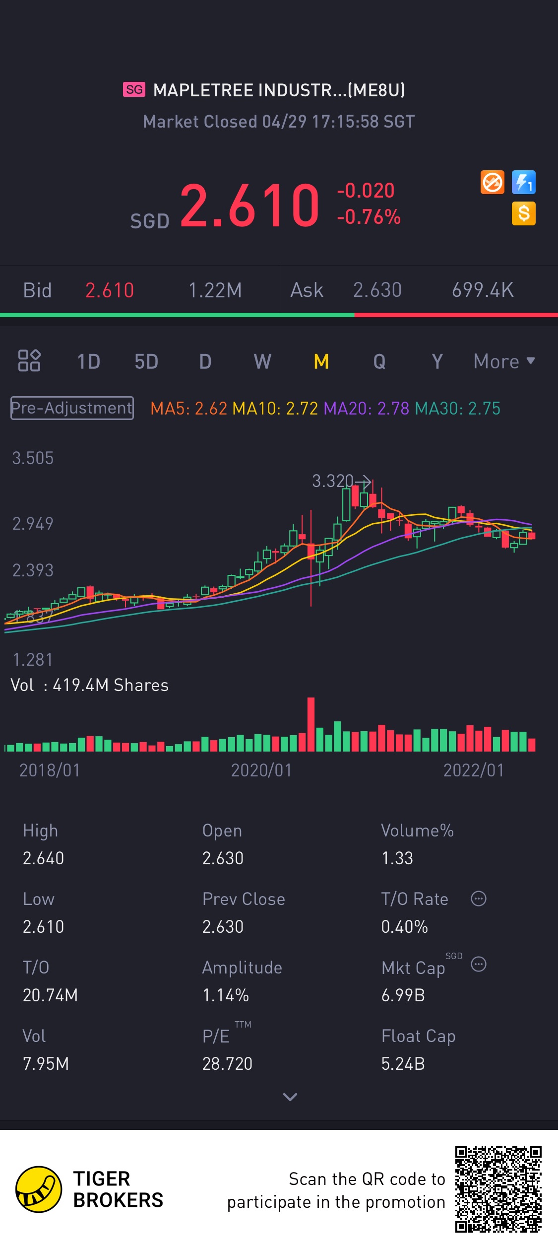 $MAPLETREE INDUSTRIAL TRUST(ME8U.SI)$from the chart, looks like it has retraced a lot close to its moving average support. It is a pretty good value Reit with great track record, in fact beating the SPY ETF in terms of capital gains and distribution (dividend) since IPO. It also have a diversified portfolio of tenants with high occupancy rate.