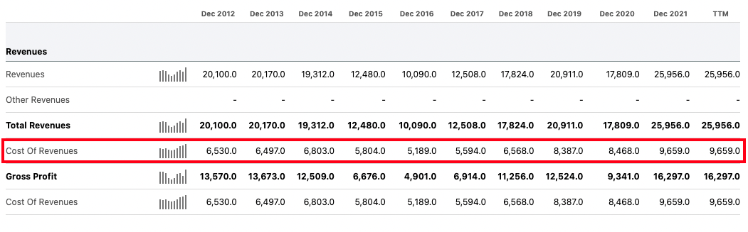 OXY's cost of revenue