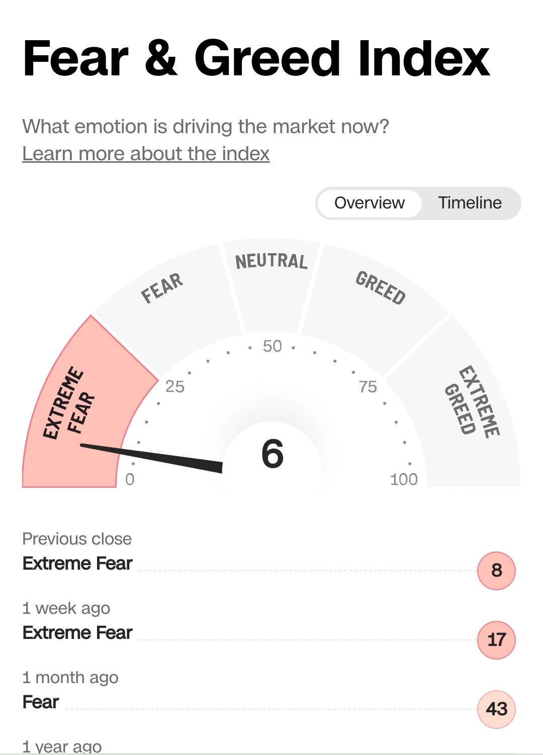 Wow Extreme fear of 6[Surprised] stay strong, continue to buy the dip....who knows when this will end....