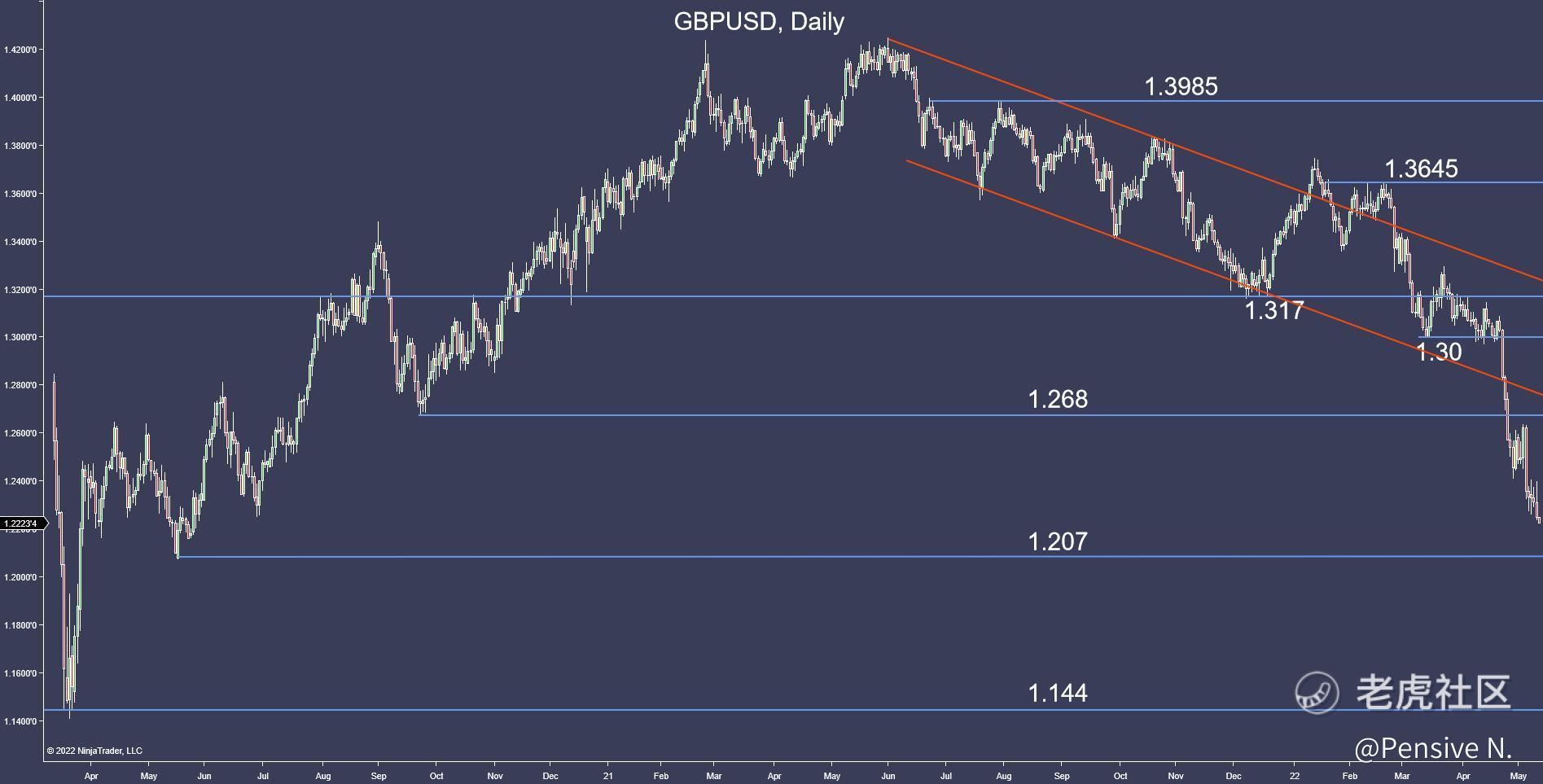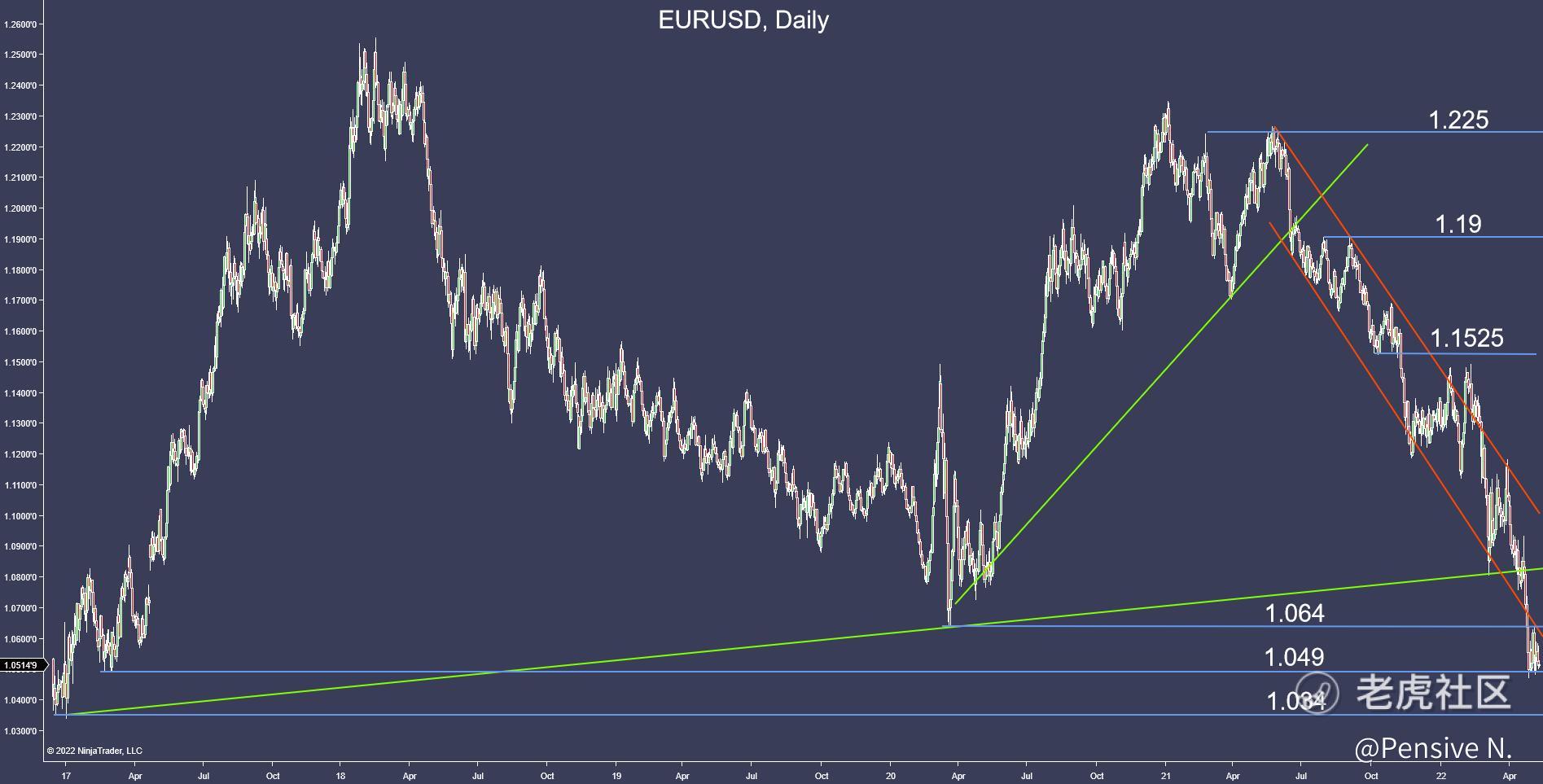 - EUR is still very weak, having broken below its 2017 uptrend and 2020’s low at 1.064