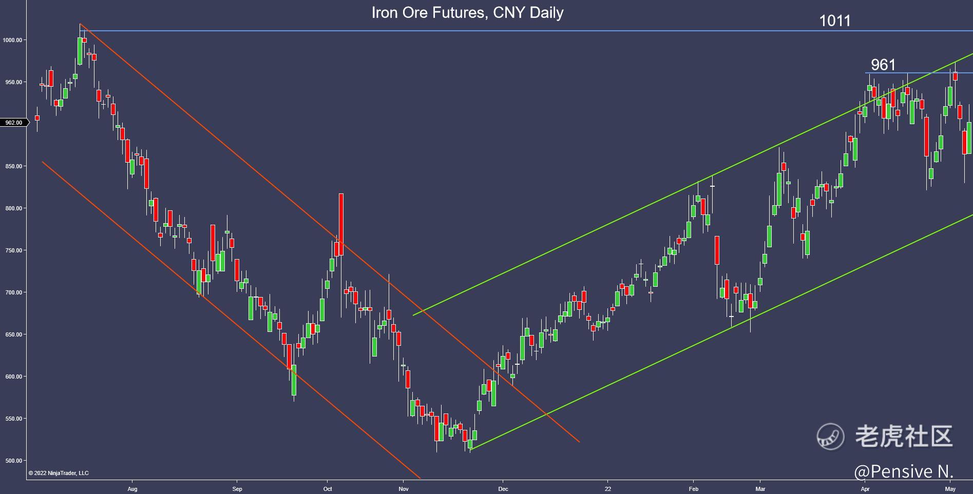 - Iron ore remains in its bullish channel, but has spent the past month trading in a wide range