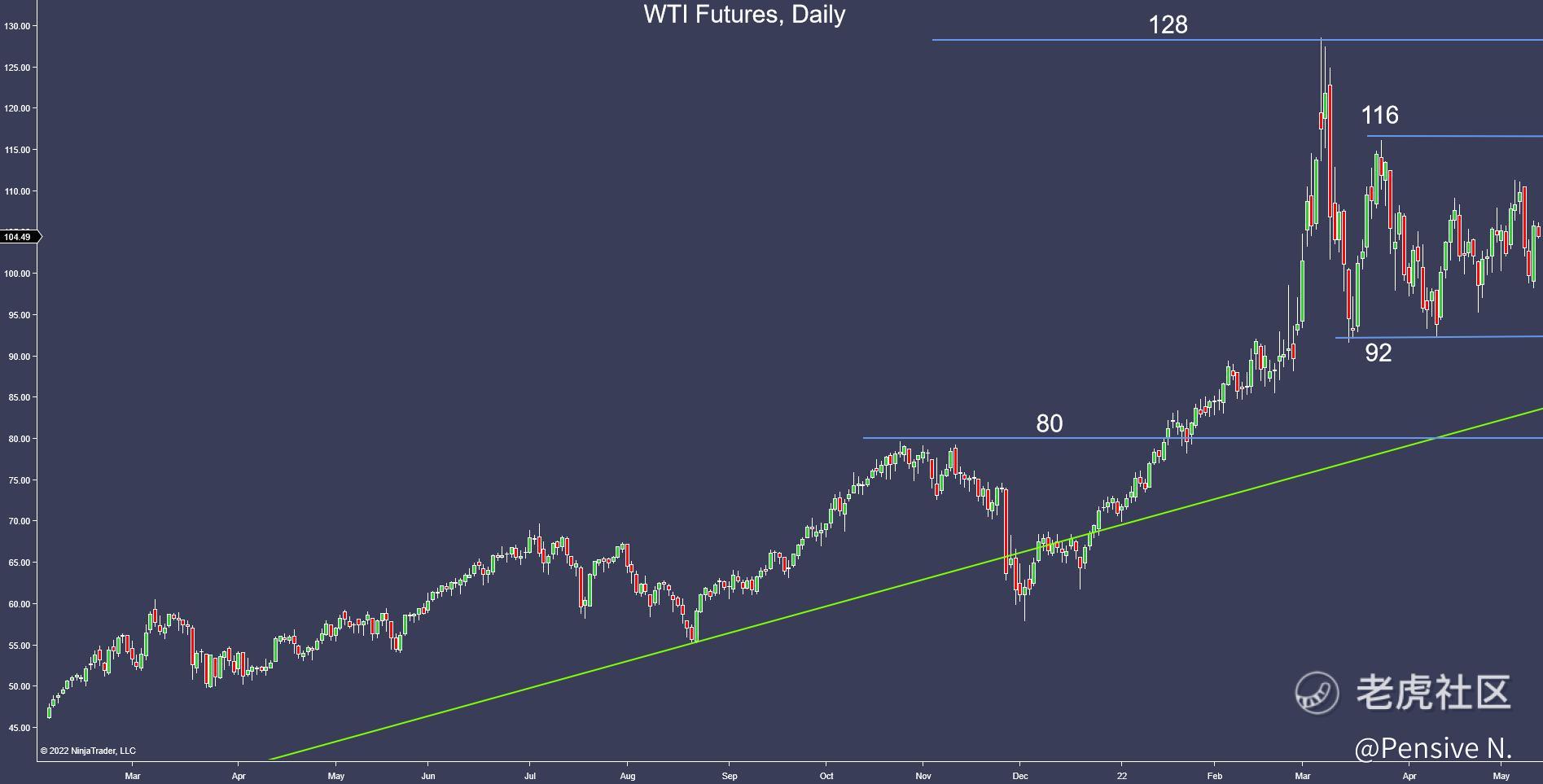 - Oil is still trading in a wide range, between $92-$116, with March 7th looking like a cyclical top