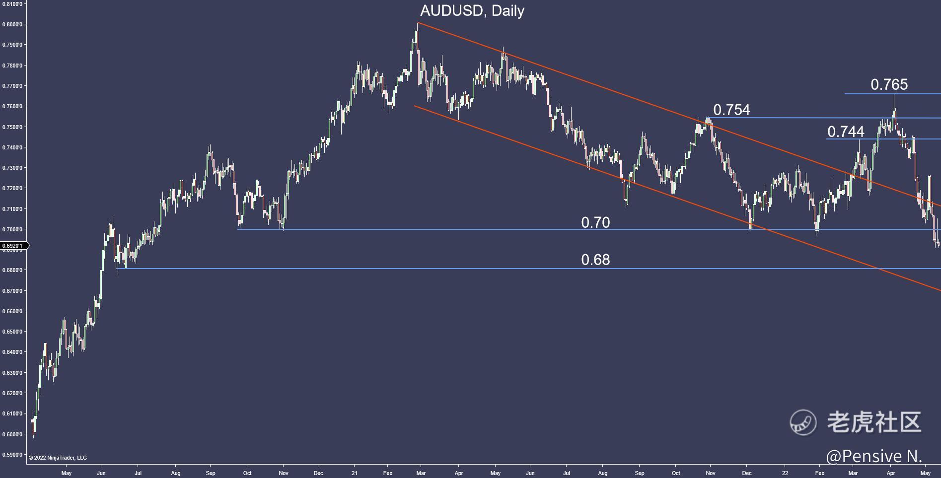 - It has broken below critical support at 0.70, and is likely to test support at 0.68 soon