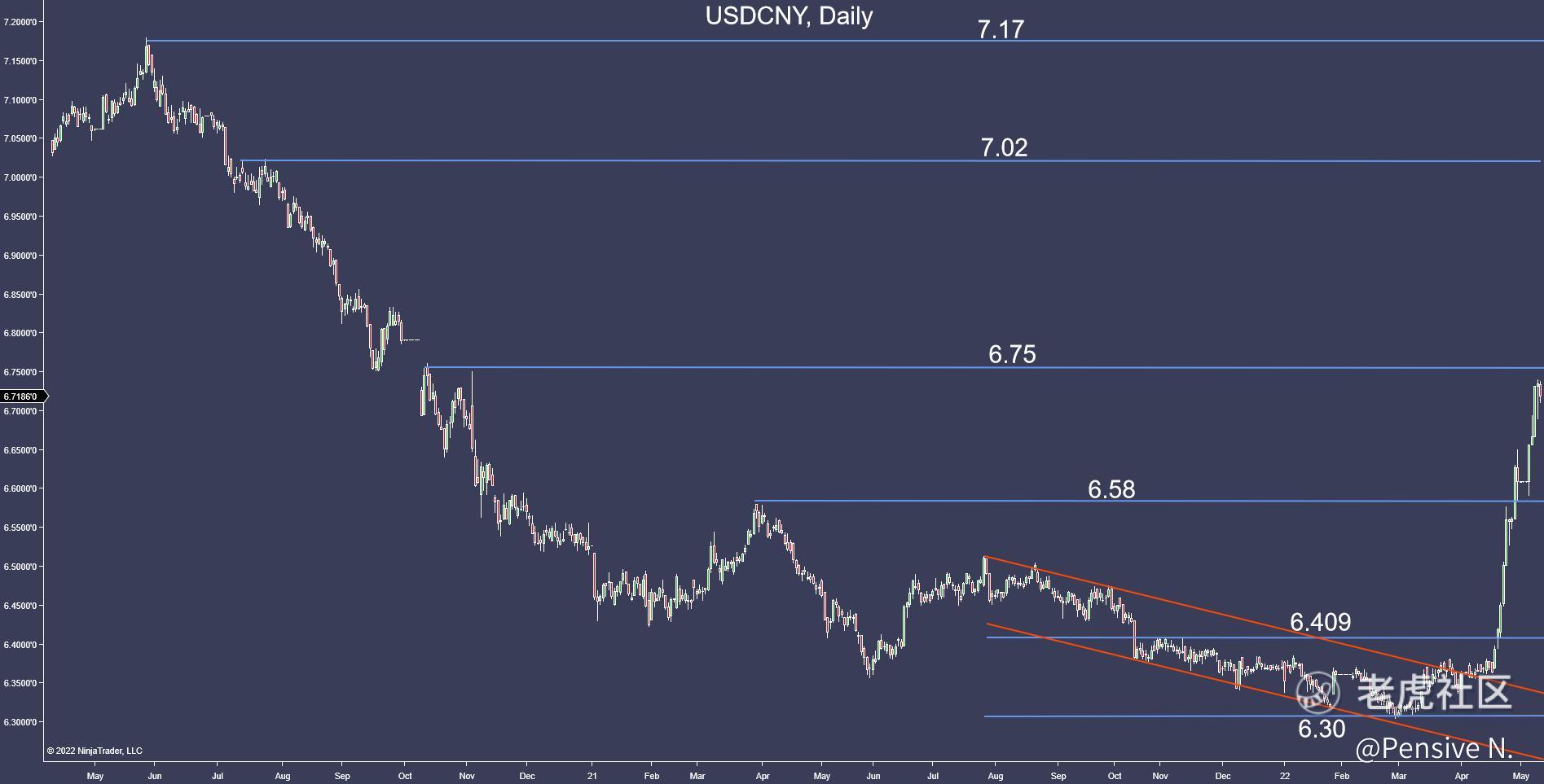 - Looking and waiting for US long yields to top out before purchasing USTs (10y and/or 30y), which is looking more likely now that CNY has started to crash