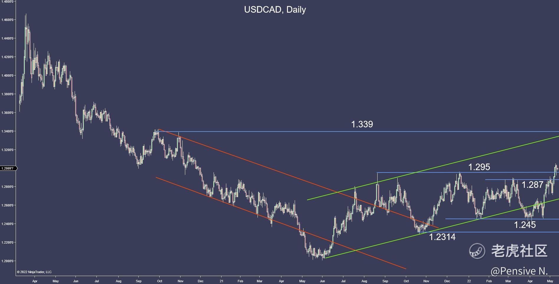 - CAD has broken above major resistance at 1.295 and is looking weak against the USD again, even with WTI consolidating above $100