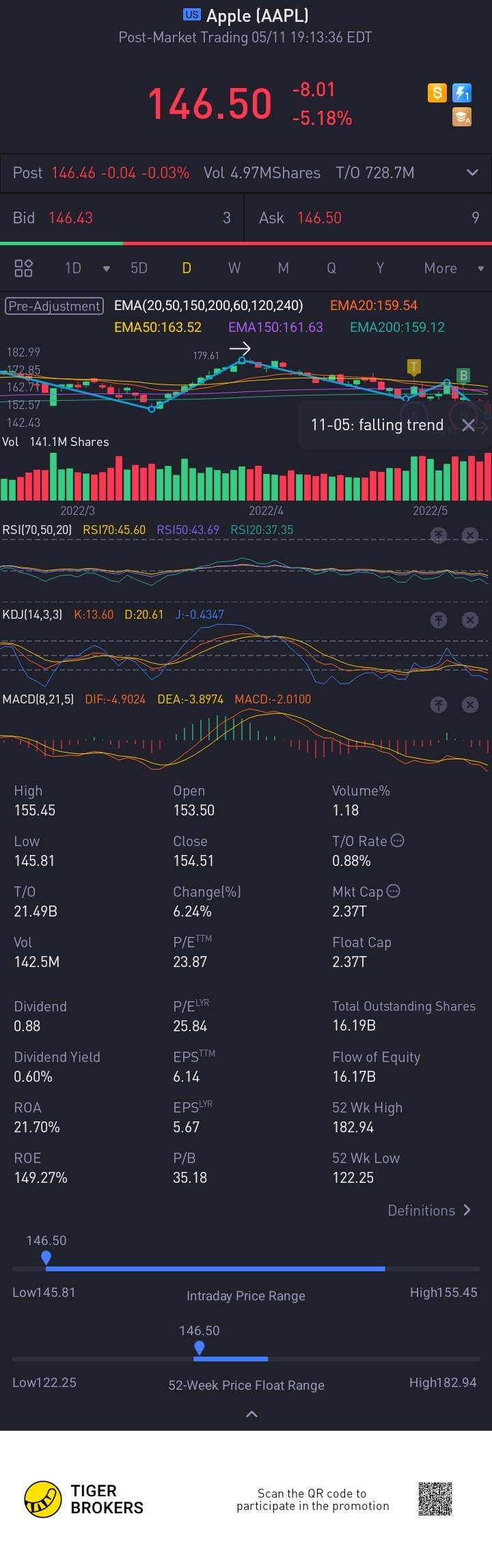 $Apple(AAPL)$this is just the beginning. I think more downward pressure on price from selling in the coming days. I don't dare to enter yet.