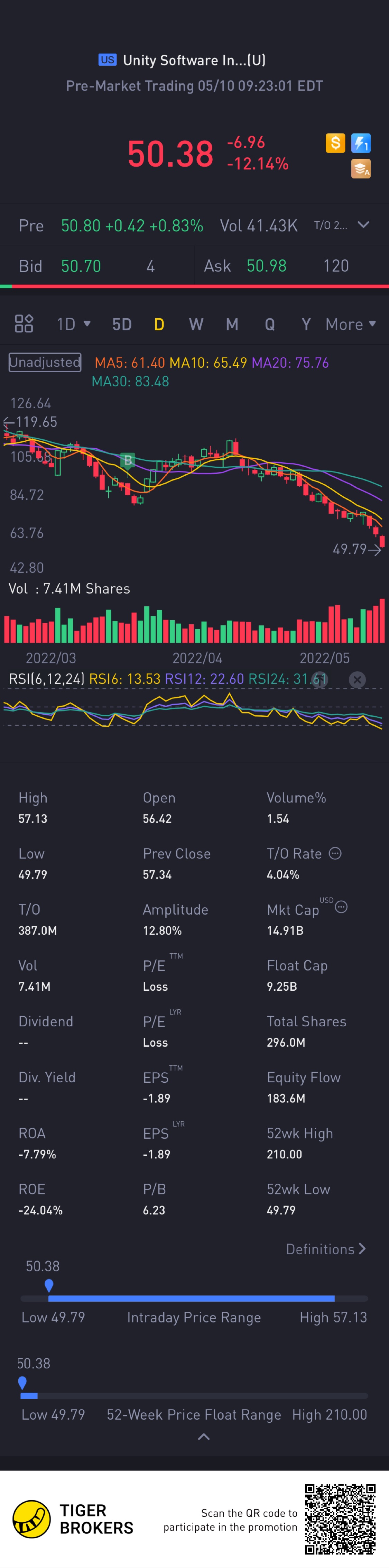 $Unity Software Inc.(U)$Almost going to its previous low. Earning report after market closed. Keeping finger crossed.