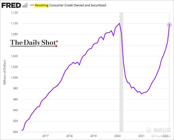 The chart above shows that revolving credit is rocketing and is about to hit new record highs.