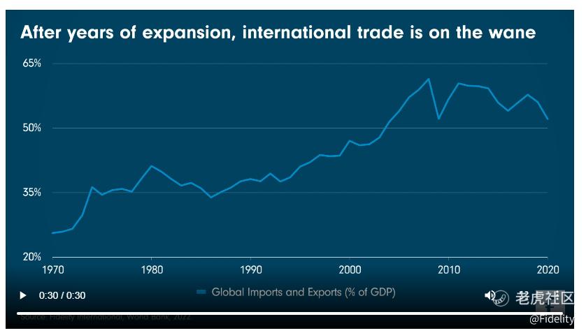This week’s Chart Room shows how trade tensions among the US, China, and other major trading nations have led to a relative decline in levels of global imports and exports ever since the 2008 financial crisis. The fallout from the Covid-19 pandemic has accelerated this while forcing companies and governments to reflect on their regional dependencies as global supply chains have come under greater pressure. Vladimir Putin’s invasion of Ukraine and the resulting sanctions aimed at Russia are likely to exacerbate this trend of deglobalisation.