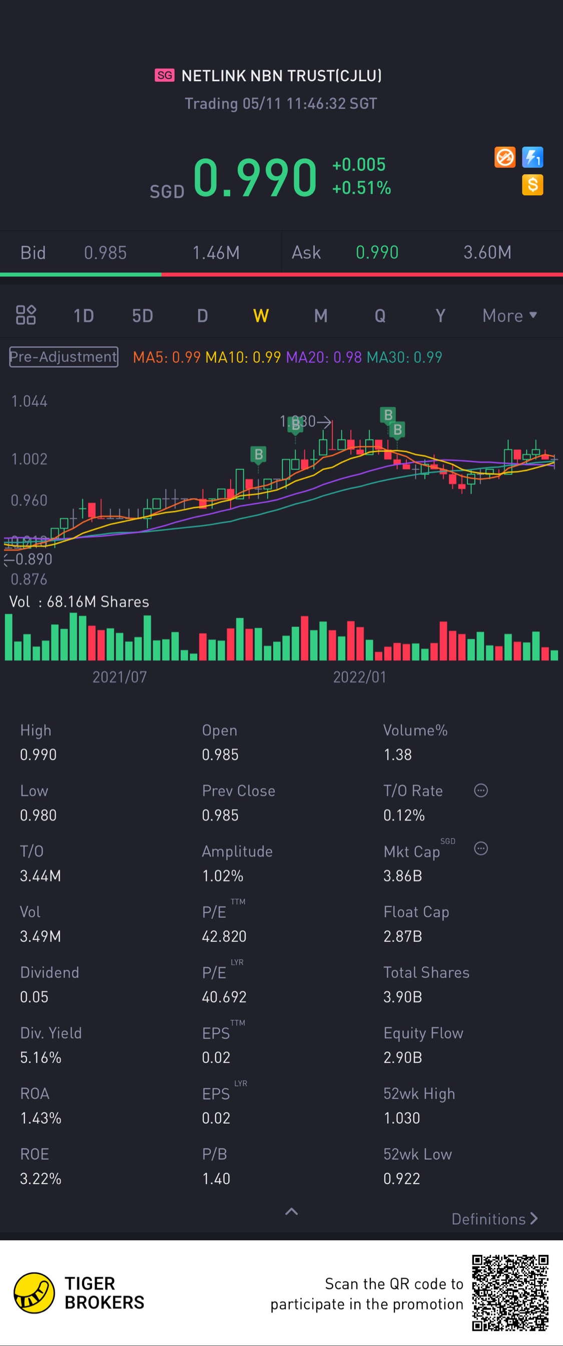 $NETLINK NBN TRUST(CJLU.SI)$Flat.