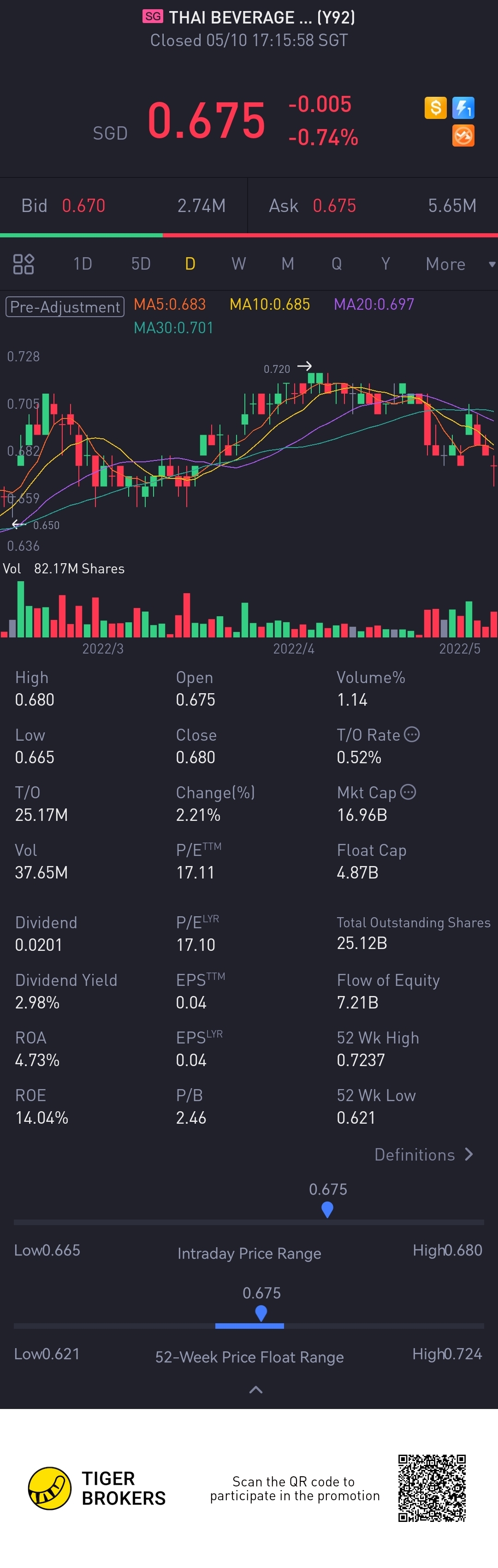 $THAI BEVERAGE PUBLIC CO LTD(Y92.SI)$ buy low