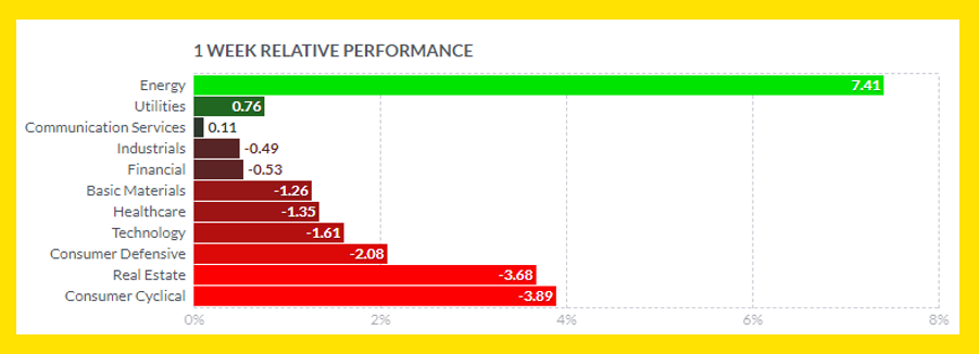 Last week, The Energy, Utilities, and Communication Services sectors, are the top gainer sectors, especially energy got 7.41% increase. Consumer Cyclical, Real Estate, Consumer Defensive continue the 3 losers of last week.