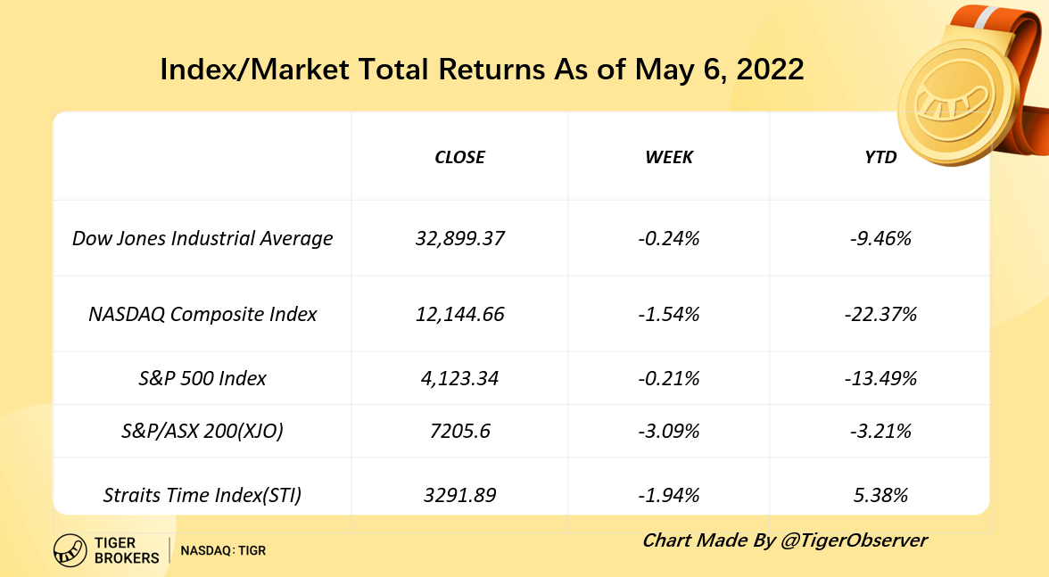 As of Friday, $DJIA(.DJI)$ slightly dropped 0.24%, $NASDAQ(.IXIC)$ declined 1.54%, $S&P 500(.SPX)$ lost 0.21%, $S&P/ASX 200(XJO.AU)$ dropped 3.09%, $Straits Times Index(STI.SI)$ slightly decreased 1.94%.