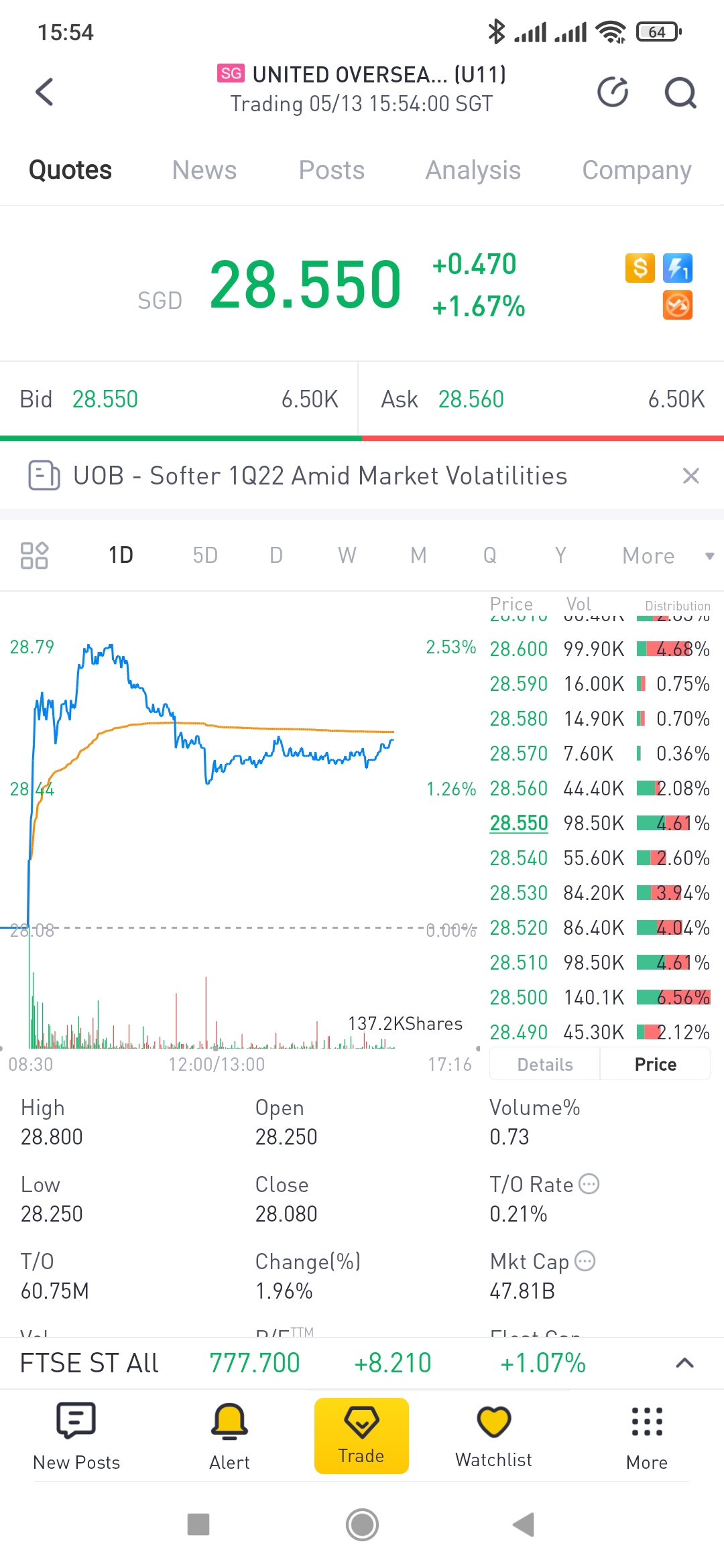 $UNITED OVERSEAS BANK LIMITED(U11.SI)$Today is dividend payout day, $0.60 per share, and already credited into Tiger account this morning, faster than CDP account which still not credited as this afternoon.